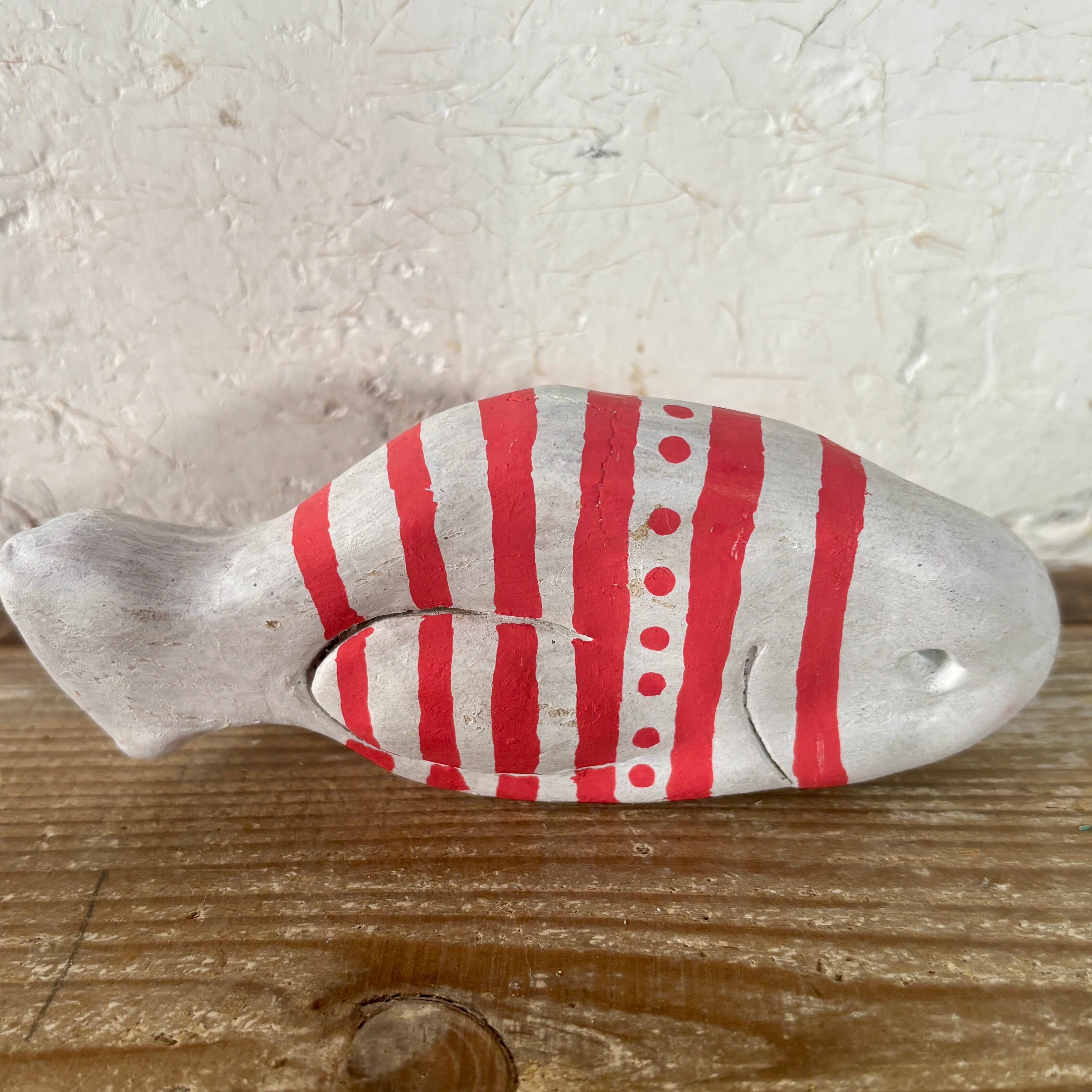 陶器ねんど作品第一号です。オーブンで焼いて陶器になりました。赤いストライプがビビッドでありながらもナチュラルな風味は損なっていません。陶器らしい軽いヒビのようなものや擦れのようなものがありますがそれもアジだと受け取ってくださる方の元へ旅立てれば嬉しいです。重さはさほどありませんが(下記ご参照ください)落としたら場所によっては割れる可能性があります。
