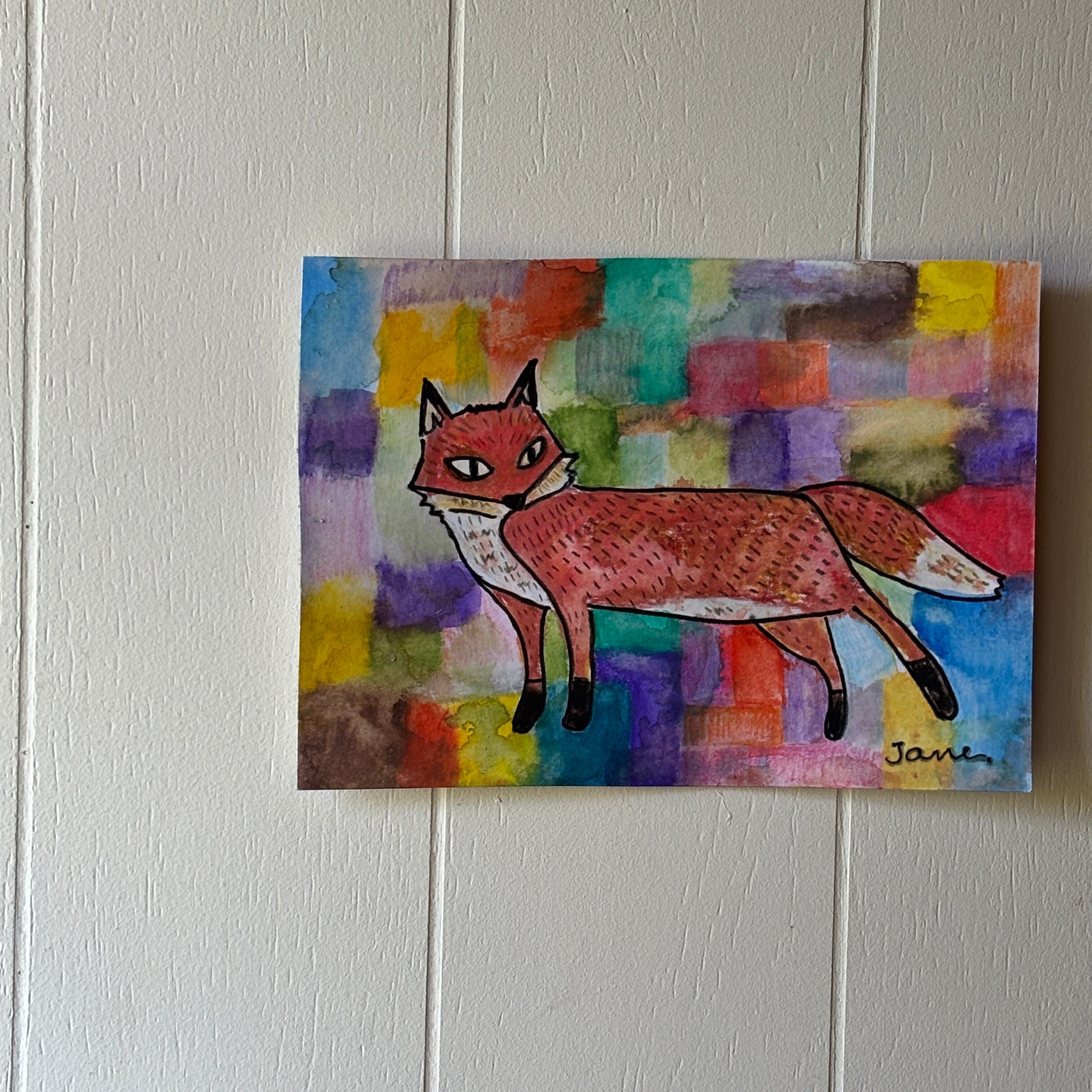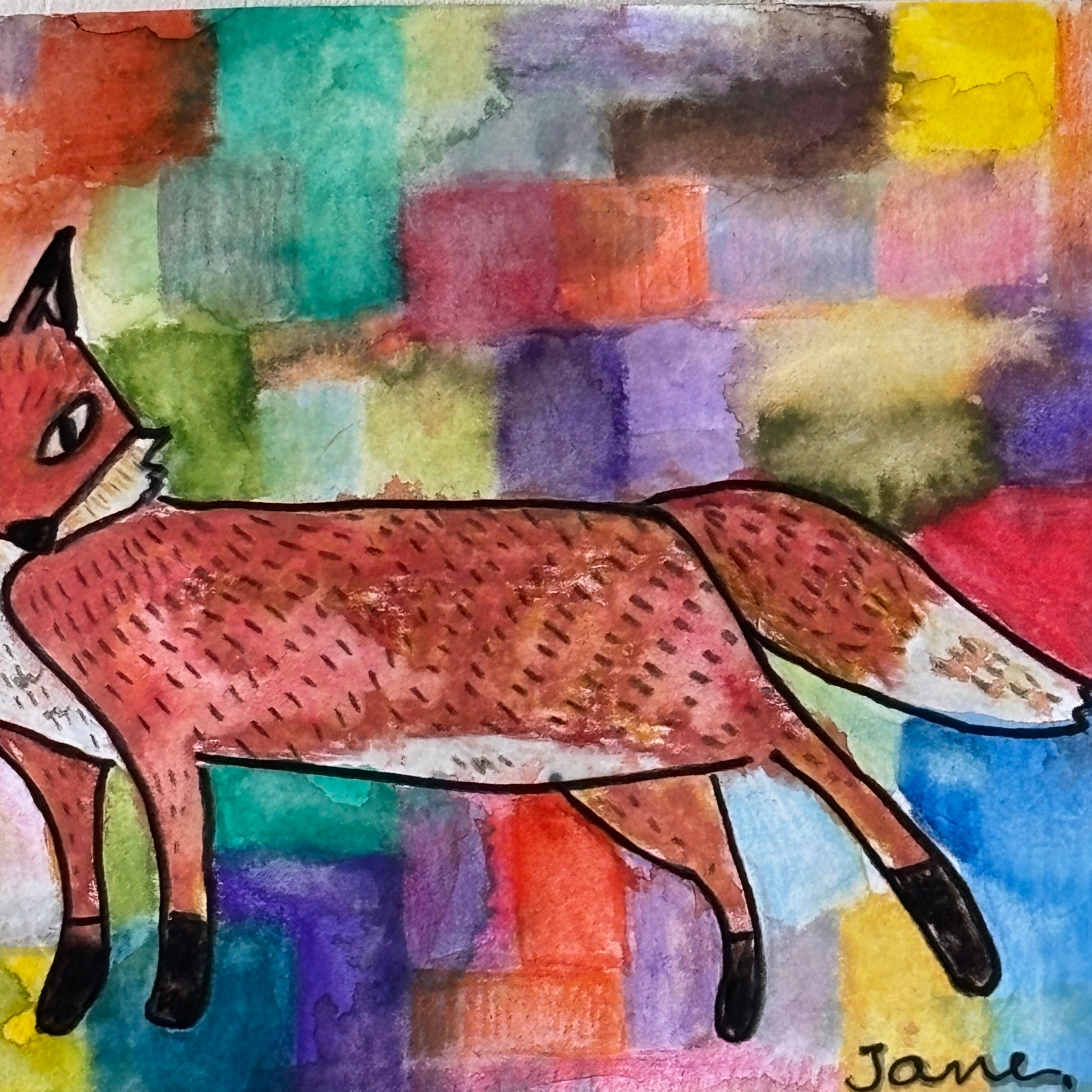 ヴィヴィットで多彩な背景の中佇む1匹のキツネは何を想う?