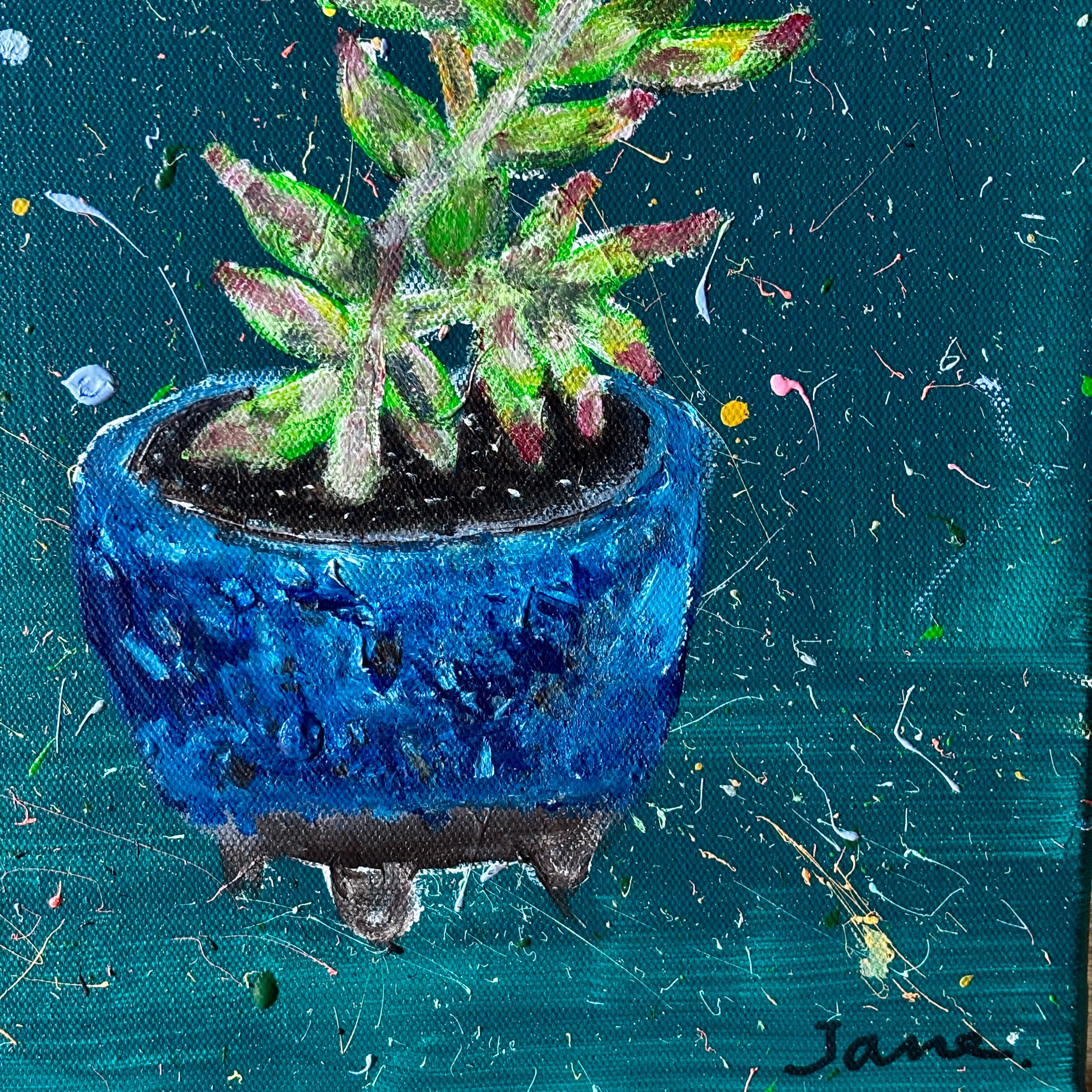 多肉植物が陶器製の植木鉢に入っています。多肉の力強さ、生命力を感じ取ってくださったら何よりです。ポジティブになれますね。