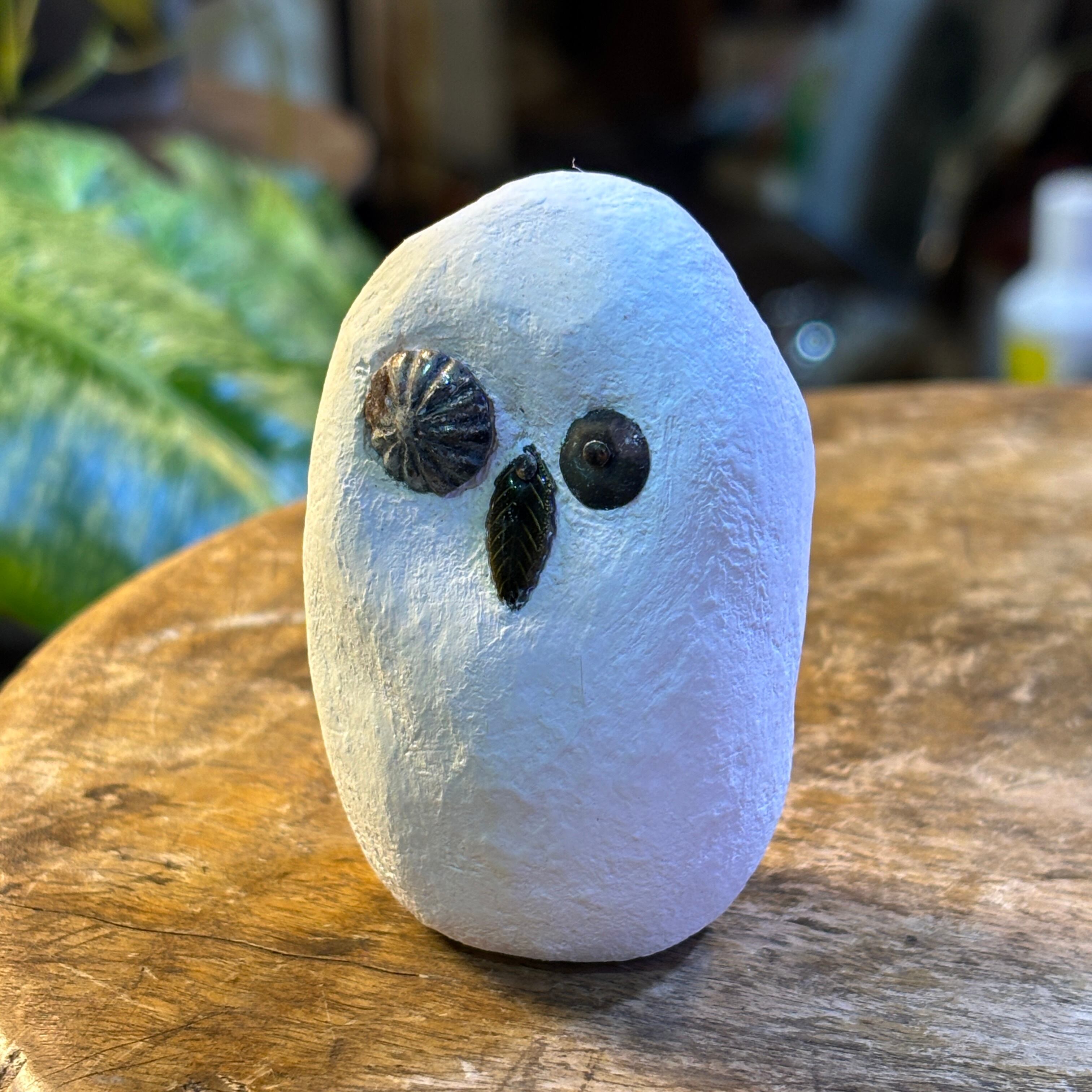 漆喰(オリジナル+オーガニック)で作られたフクロウの置物です。