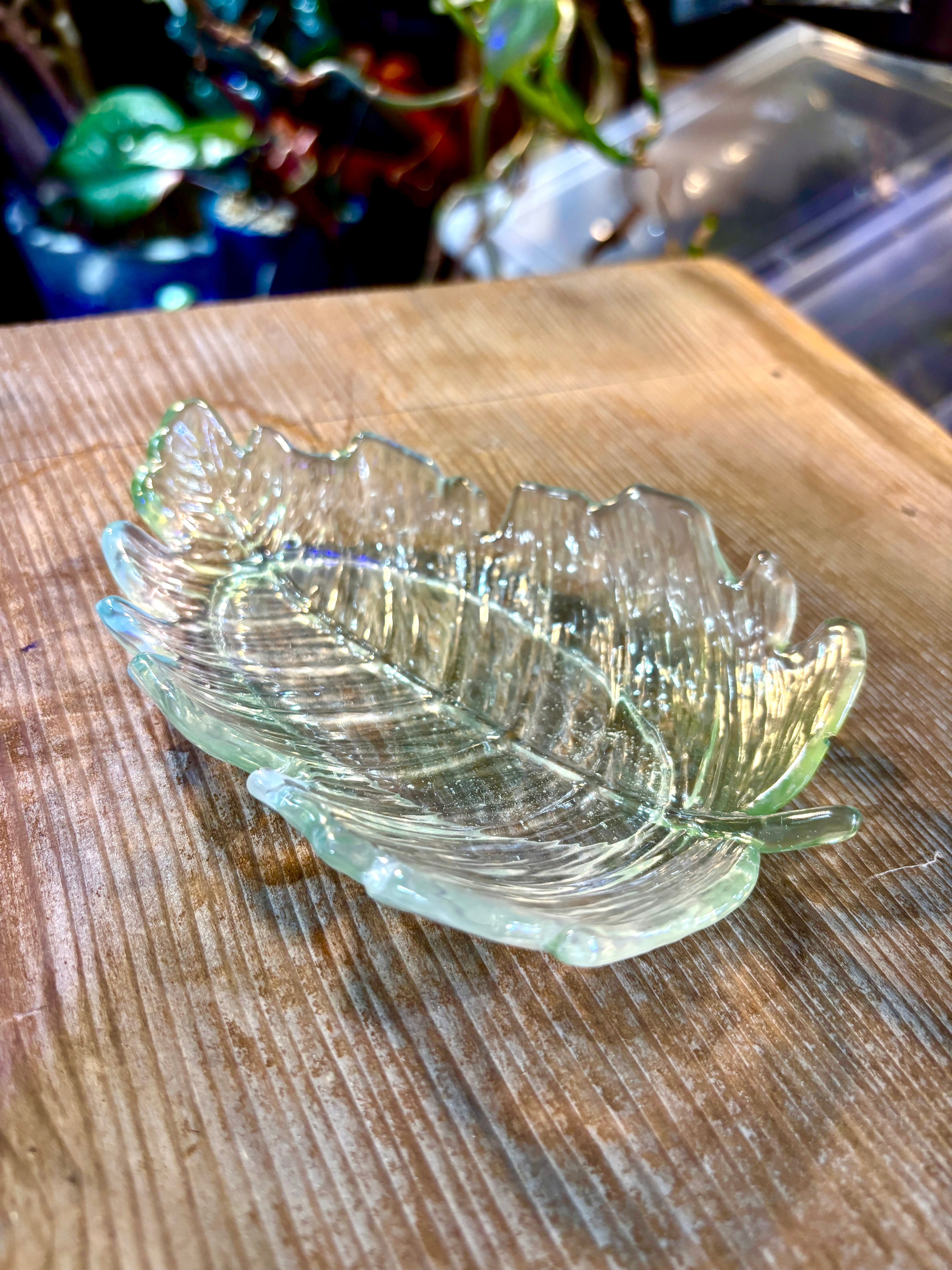 葉っぱの形のレジンのトレイです。葉脈がはっきりしていて割とリアルです。