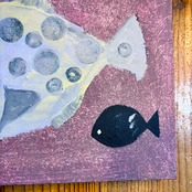 水の中なの?不思議な色が醸し出す背景に、2匹の魚、親子なの?